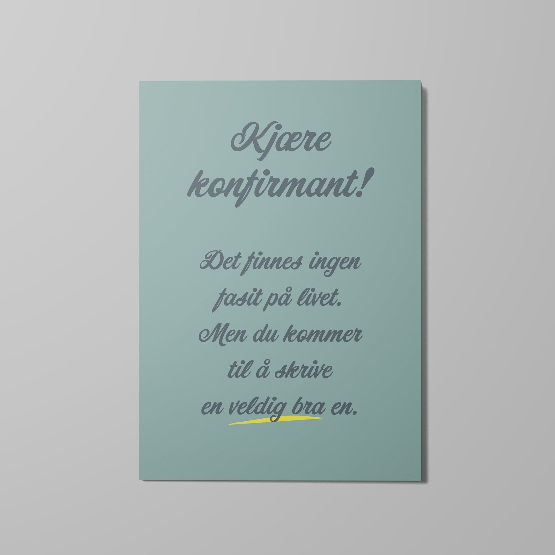 Dobbelt kort i størrelse A6, med fire sider og konvolutt i farge. Kortene er designet av TWAS og produsert i Stavanger.