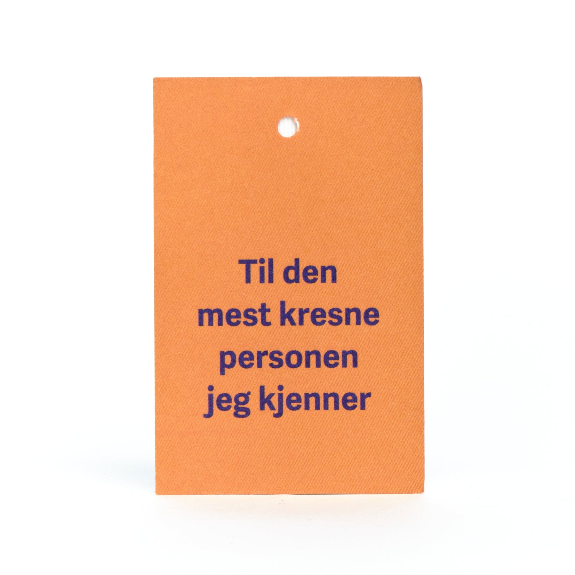 Fargerik gavelapp i 85x55 mm. Gull til gavebånd.