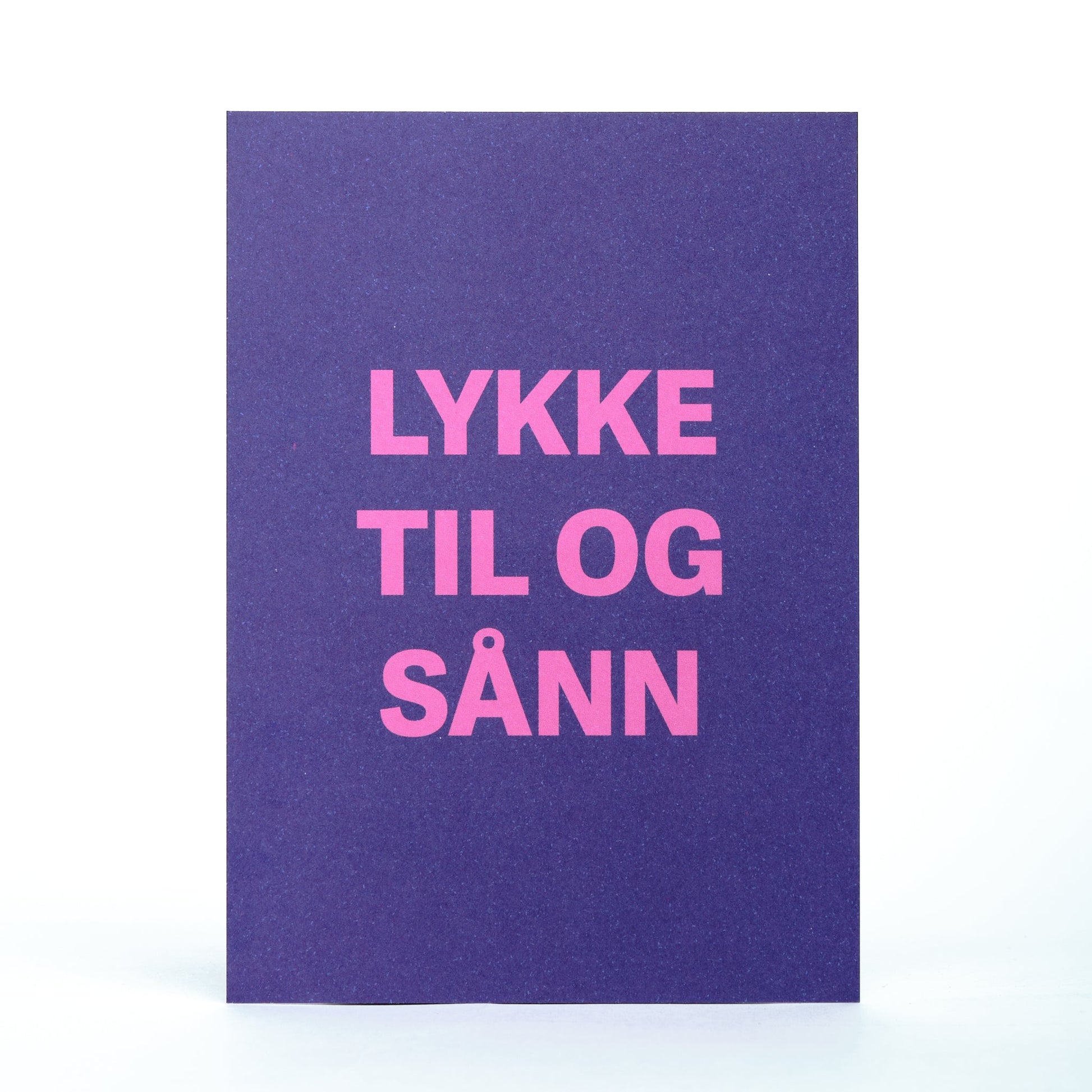 Enkelt kort i størrelse A6 med teksten "Lykke til og sånn".